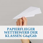 Sensationelle Entfernungen und spektakuläre Würfe von Papierfliegern konnte man Anfang Oktober (1. Oktober 2025) in der Schul-Aula beobachten. Die beiden Klassen G6a und G6b duellierten sich im Wettbewerb der Papierflieger. Die Fluggeräte wurden von den Schülern aus Papier selbst gebastelt. Da wurde vorab getüftelt und experimentiert, welche Falttechnik die beste Flugweite bzw. Aerodynamik mit sich …
