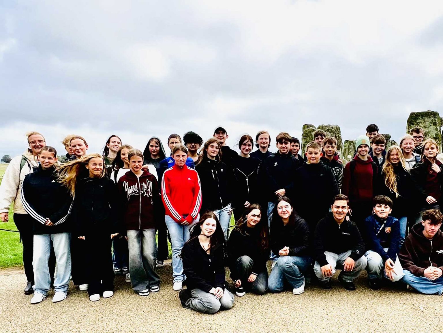 „Nach einer langen Busfahrt in England angekommen und wurden unseren Gastfamilien vorgestellt. Das war aufregend und wir waren ziemlich müde. Im Anschluss haben wir eine Einweisung bekommen, was wir die Woche über machen und wann wir wo abgeholt werden. Sonntagmorgen sind wir dann alle zusammen ans Meer gefahren. Leider konnten wir nicht ins Wasser, da die Strömung zu stark und das Wasser zu kalt war. Zusammen haben wir dort ein Gruppenfoto gemacht und durften dann selbständig den Strand erkunden. Nachdem wir alle wieder im Bus waren, haben wir abgestimmt, Fish and Chips essen zu gehen. Abends wurden wir wieder zurück zu unseren Gastfamilien gebracht. Montag sind wir nach London gefahren. Wir haben eine Stadttour mit den bekanntesten Sehenswürdigkeiten wie z.B.: Big Ben, London Eye und Buckingham Palace bekommen. Nachmittags hatten wir dann Freizeit in London. Wir waren in vielen verschieden Läden, und haben Geschenke und Mitbringsel für unsere Familien gekauft. Dienstagmorgen hatten wir unsere ersten Unterricht in der Sprachschule. Als wir Schulschluss hatten, sind wir zusammen mit unseren Lehrern nach Bournemouth gelaufen, um da unseren Nachmittag zu verbringen. Wir waren dort am Strand und haben viele Fotos gemacht. Abends hatten wir dann einen Karaoke-Abend, er hat uns allen sehr gefallen. Mit dem Bus zur Salisbury Cathedral ging am Mittwoch. Dort haben wir eine kleine Tour gemacht. Danach sind wir weiter zu Stonehenge gefahren, wo wir uns gegenseitig fotografiert haben. Nachmittags hatten wir dann wieder Unterricht. Im Anschluss haben wir dann noch einen Film geguckt. Als wir abends nach Hause gebracht wurden, mussten wir schon anfangen zu packen. Donnerstagmorgen haben uns dann unsere Gastfamilien zurück zur Sprachschule gebracht und wir haben uns von ihren verabschiedet. Etwas später hatten wir dann nochmal Unterricht und danach das letzte Mal Freizeit in Bournemouth. Gegen 15:00 Uhr haben wir uns dann an unserem Reisebus getroffen und sind schließlich abgereist. Es war eine schöne Fahrt, die uns allen viel Spaß gemacht hat.“ Ronja K.
