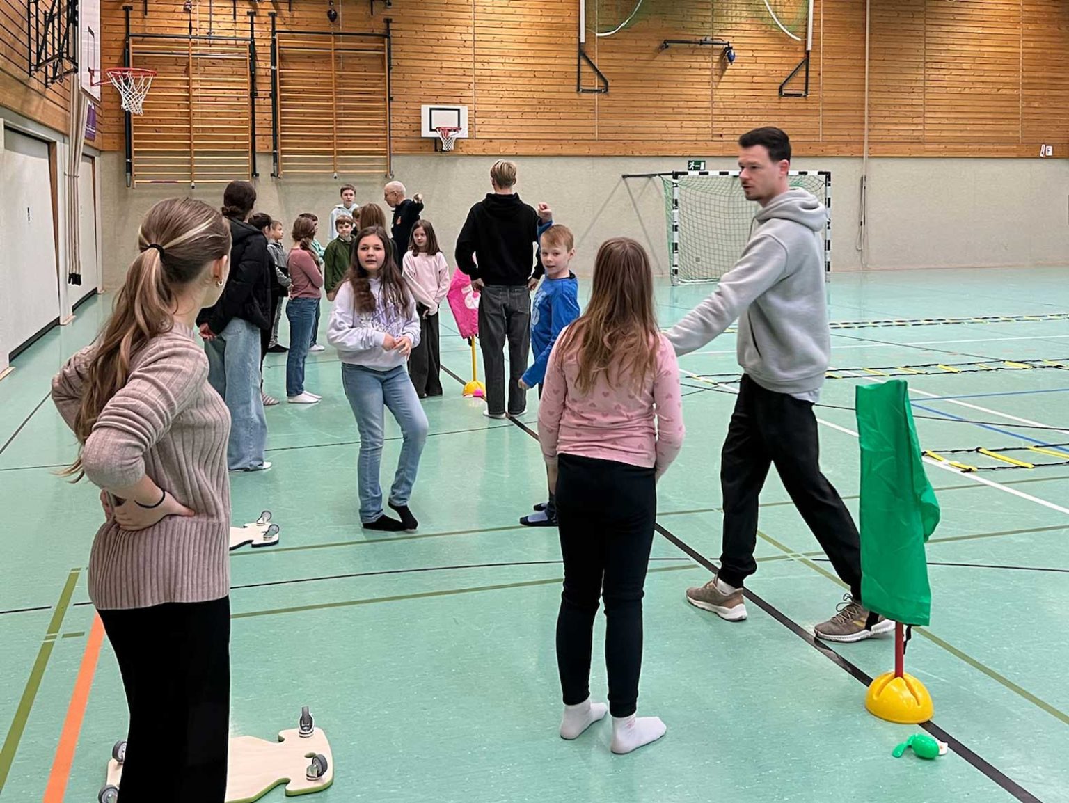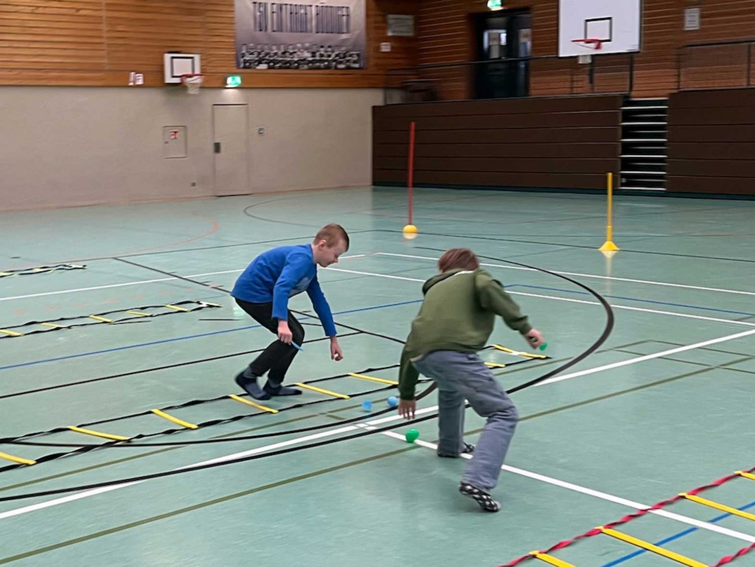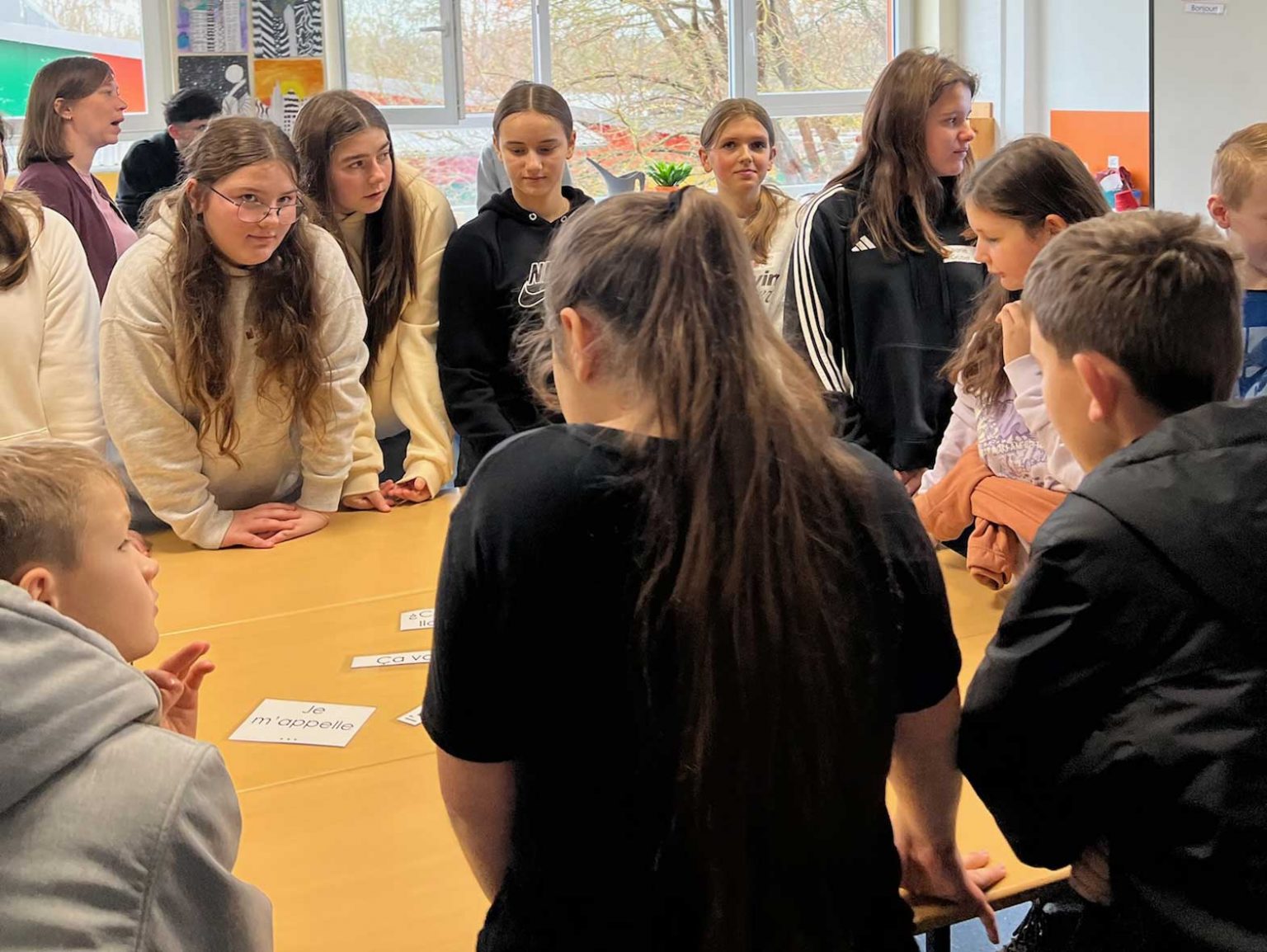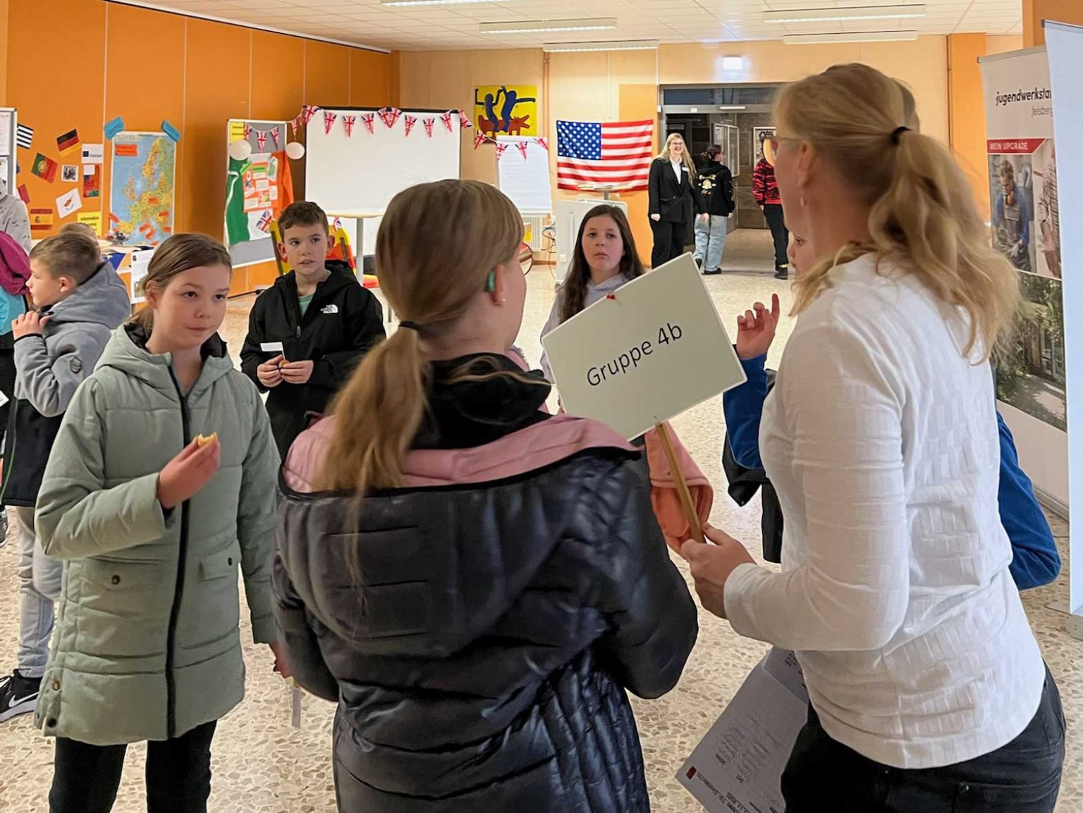 Angeführt von Kolleginnen und Kollegen bekamen im ersten Teil der Veranstaltung die Grundschüler:innen in Kleingruppen durch einen geführten Stationsbetrieb in den Fächern Deutsch, Mathematik, Sprachen (Englisch, Französisch, Spanisch) und Sport einen Einblick in die Unterrichtspraxis an der DBS. Zwischendurch wurden die SuS noch von den Eltern des aktuellen Jahrgangs 5 und dem Vorstand des Elternbeirats in der Teestube mit einem Muffin verwöhnt.
