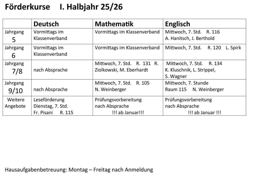 - Förderangebote: Deutsch, Mathematik und